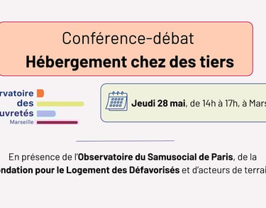 L’Observatoire des pauvretés a le plaisir d'annoncer la tenue d'un événement consacré à l’hébergement chez des tiers, en présence de l’Observatoire du Samusocial de Paris et de la Fondation pour le Logement des Défavorisés, deux structures ayant mené des travaux de référence sur ce sujet.